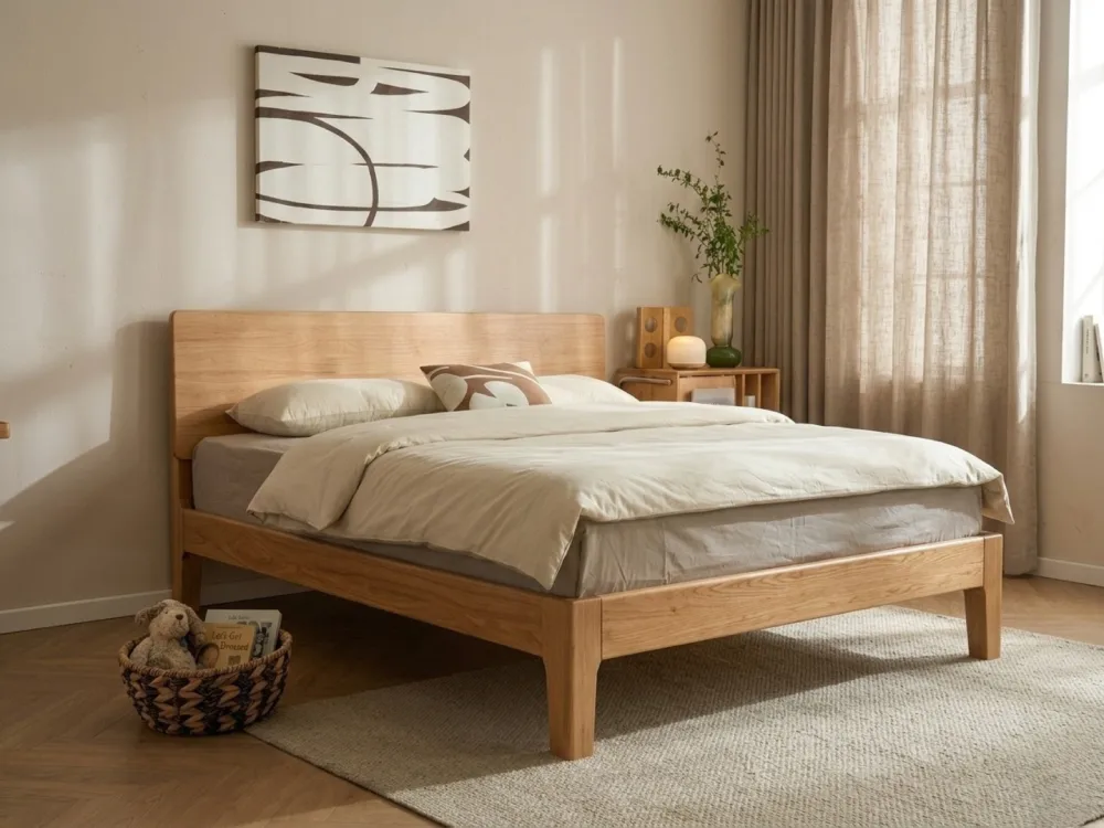 Chúng tôi sử dụng gỗ đạt chuẩn phát thải E0 (gần như bằng 0) kết hợp cùng sơn hệ nước không mùi. Không gian ngủ tinh khiết, bảo vệ hệ hô hấp của cả gia đình.